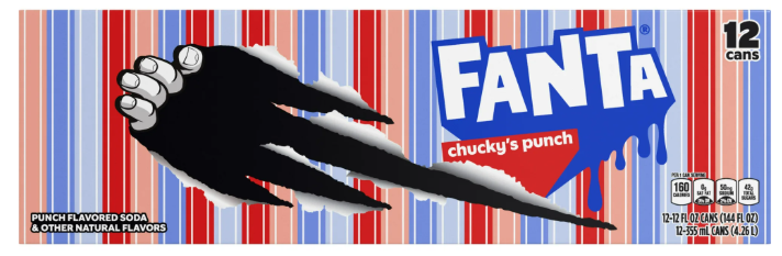 Chucky’s Punch is een gedurfde en heerlijke Fanta met een fruit punch smaak, in een griezelige verpakking. Dit unieke blik heeft zijn design te danken aan de iconische schurk Chucky. Deze Fanta is perfect voor halloween-feestjes, filmavonden en meer. Probeer het nu bij Five Star Trading Holland.