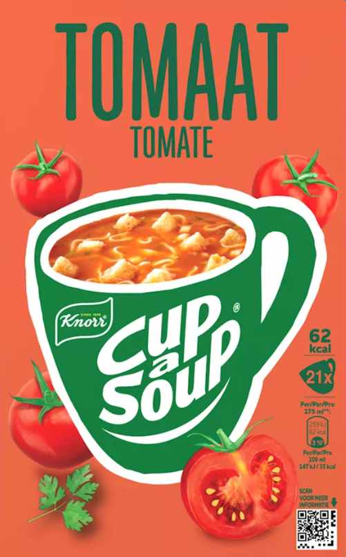 Lust auf eine leckere Suppe? Oder haben Sie einen anstrengenden Tag und brauchen Sie ein herzhafter Snack, um wieder scharf und wachsam zu werden? Dann sind Sie bei Cup-a-Soup immer am richtigen Ort! Die Cup-a-Soup ist einfach und schnell zuzubereiten: Geben Sie den Inhalt des Beutels in Ihren Lieblingsbecher und gießen Sie 175 ml kochendes Wasser ein. Dann kurz umrühren, 1 Minute warten und fertig, genießen! Auf diese Weise bereiten Sie in kürzester Zeit eine köstliche Tasse Suppe zu. Zu Hause, im Büro oder wo immer Sie sind, ist Knorr Cup-a-Soup immer ein köstlicher herzhafter Snack.