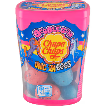 Beleef een magisch snoepmoment met Chupa Chups Unicorn Eggs Bubble Gum. Deze vrolijke eenhoorn-eitjes hebben een harde buitenkant die bij elke beet plaatsmaakt voor een vloeibare kern vol smaak. Een unieke combinatie van textuur en plezier! In elk eitje ontdek je heerlijke fruitige smaken zoals aardbei, bosbes en banaan, die zorgen voor een zoete en speelse smaakbeleving. Het kleurrijke unicorn-design maakt deze snoepjes extra leuk als traktatie, cadeautje of opvallend item op een feestje.