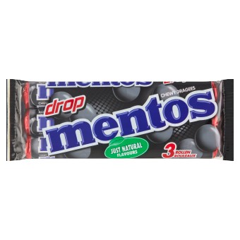 Mentos Drop rol, de lekkere dragees van Mentos met de smaak van drop. Verpakt in een rol dus handig voor onderweg of bijvoorbeeld op het werk. Lekkere frisse dragees maar dan met dropsmaak voor variatie!