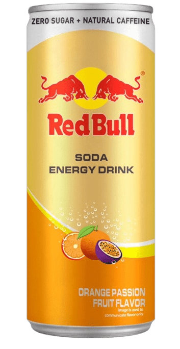Zutaten: Kohlensäurehaltiges Wasser, Maltit (Süßungsmittel), Orangen-Passionsfrucht-Aroma (natürliches Aroma), Zitronensäure (Säureregulator), Taurin, Trinatriumcitrat (Säureregulator), Acesulfam-K (Süßungsmittel), Koffein, Natriumbenzoat (Konservierungsmittel), Guarana-Extrakt (natürliches Koffein), Vitamin B3, Sucralose (Süßungsmittel), Gelborange S (künstlicher Farbstoff), Vitamin B6 und Vitamin B12.