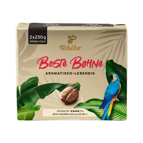 Met Tchibo Beste Bohnen presenteert Tchibo een bijzonder volle koffie. Deze editie heeft een levendige smaak, met een fijn en kruidig aroma.